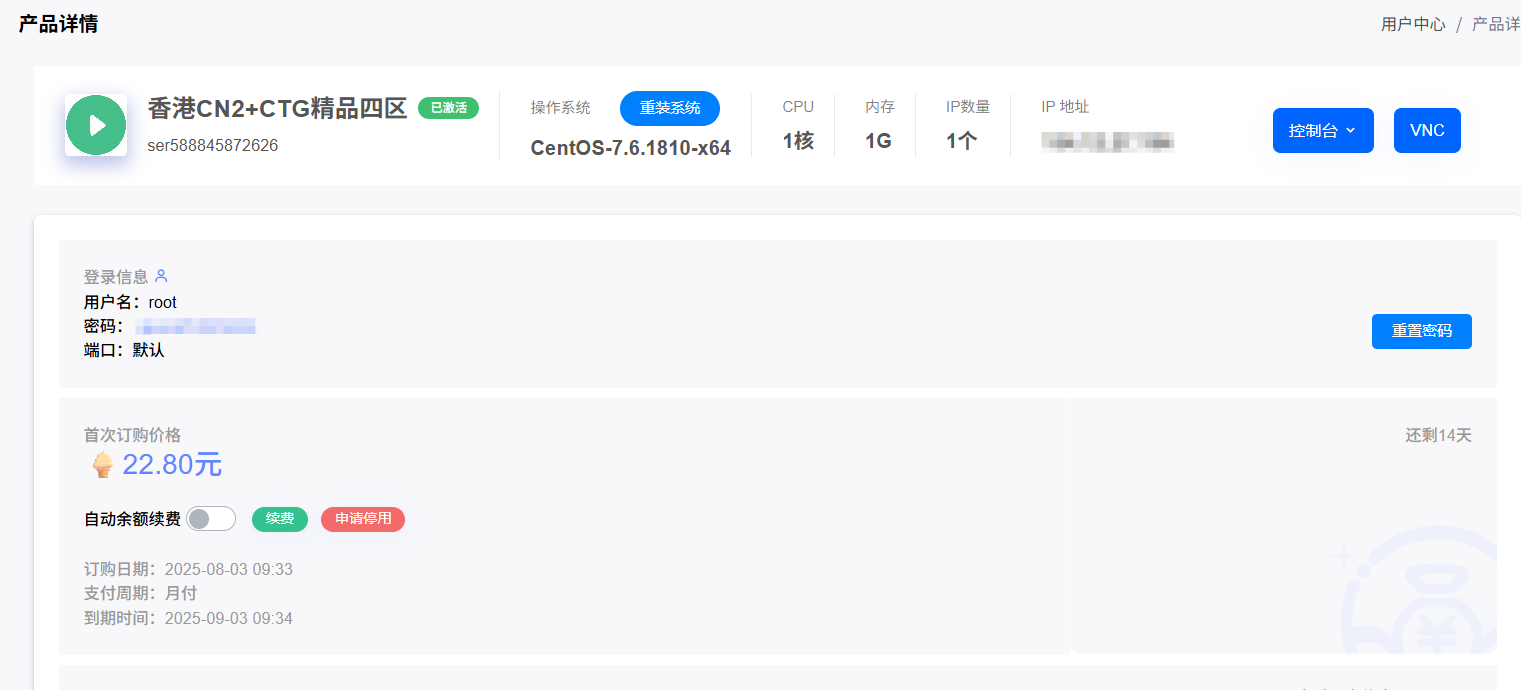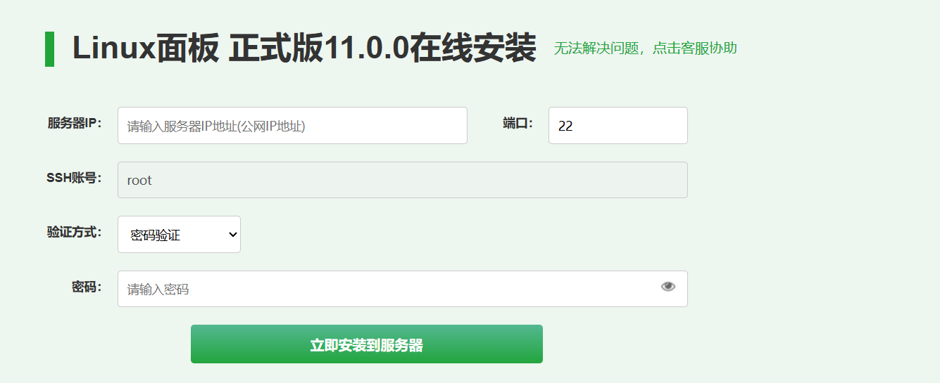 ip地址为服务器地址 密码为root密码 点击立即安装 安装过程需5-10分钟